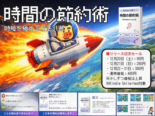 Kindle本『時間の節約術 時短を極める方法31選』を2025年12月20日に出版しました。